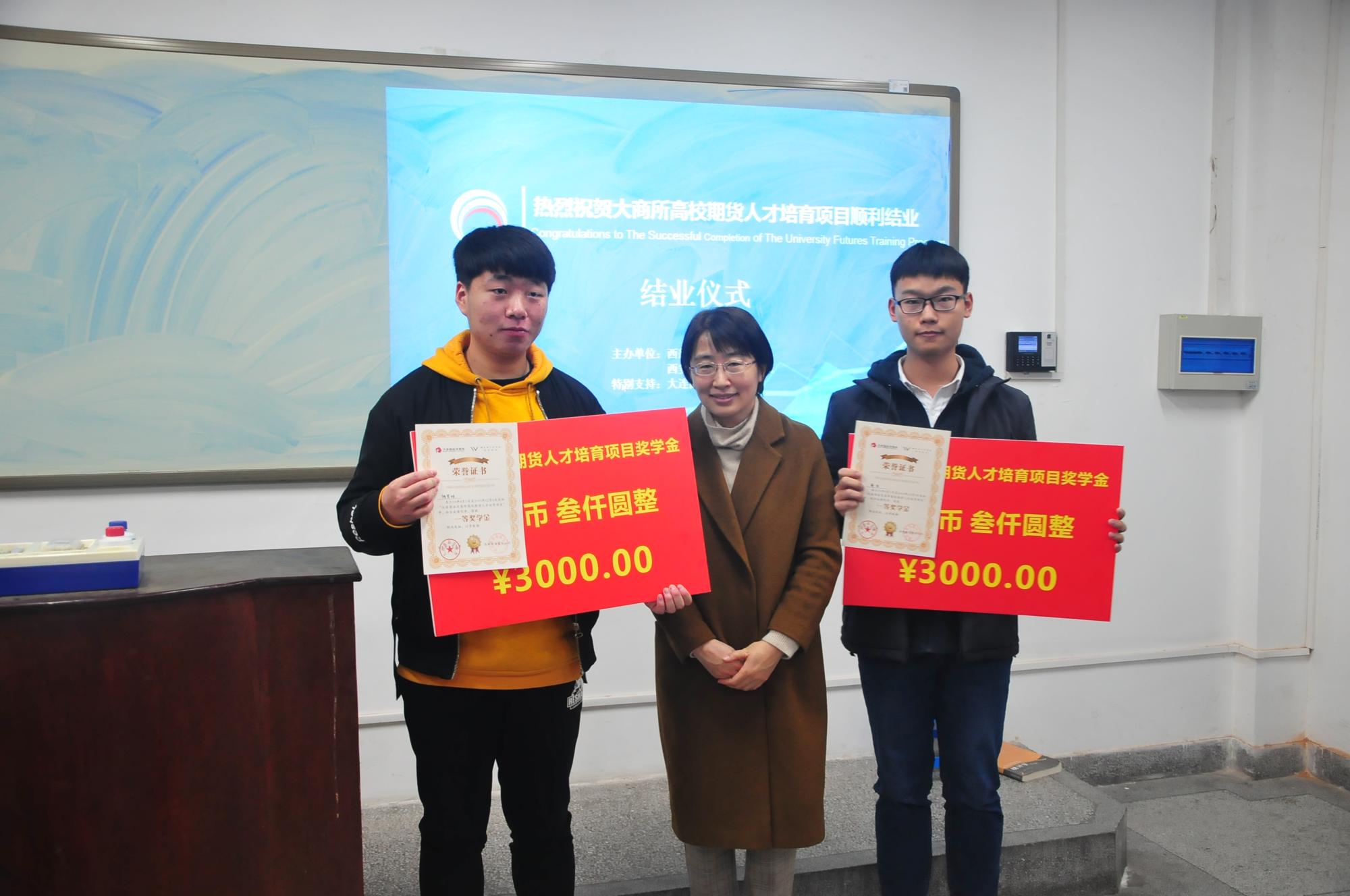 经过课程学习后的考核,最终有12名同学获得了合计2万元的课程奖学金;所有选修该课程的同学均获得了大连商品交易所与西部期货有限公司联名盖章的结业证书,并获得了相应的课程学分。西部期货还为成绩优秀的学生提供实习机会。