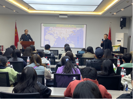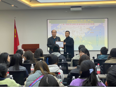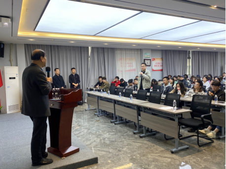 参观结束后,师生们齐聚爱菊集团会议室,聆听了爱菊集团董事长、党委书记贾合义先生的“一带一路”企业运作与粮食安全模式探索与研究的专题报告。在报告中,贾总介绍了国际粮食产业的发展现状,分析了我国的粮食安全形势,强调了粮食安全以及粮食贸易对于粮食安全的重要性。基于爱菊集团在哈萨克斯坦的投资实践和经验,总结了集团积极践行“一带一路”倡议,构建国际优质粮食进口大通道,建成“北哈州、阿拉山口、西安”三位一体、一区多园、多园联动的跨国产业链运营经验;并以“粮食贸易是永不会过时的贸易”为报告画上圆满的句号。