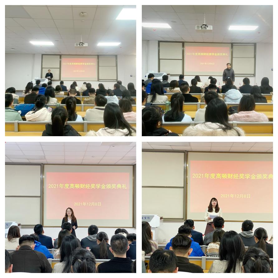 举行。高顿财经领导、经金学院党委副书记周建伦、宗濂书院辅导员梁俊凤、院校友办主任任小静、院奖助金业务主管闫佳音和获奖的研究生、本科生代表参加。颁奖典礼由院团工委书记王平老师主持。