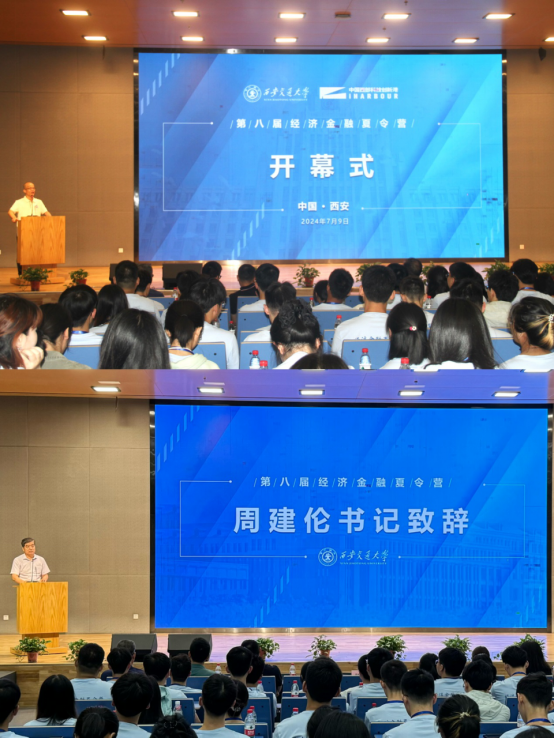 7月9日,夏令营开营仪式在创新港涵英楼2W201报告厅举行,经金学院副院长温军主持,院党委书记周建伦代表学院致开幕辞。周书记对经过层层遴选前来参加夏令营的优秀大学生们表示热烈的欢迎与祝贺,并从学校和学院的历史沿革及学科发展方面进行介绍,勉励营员们积极交流、拓宽视野,用心感受经金学院浓厚的学术氛围,欢迎同学们九月推免选择交大、加入交大经金学院大家庭。随后,学院八位系主任、系支部书记分别从研究方向、师资队伍、人才培养、就业情况介绍了各个专业的特色优势,帮助同学们增强对学院学科专业的认识。