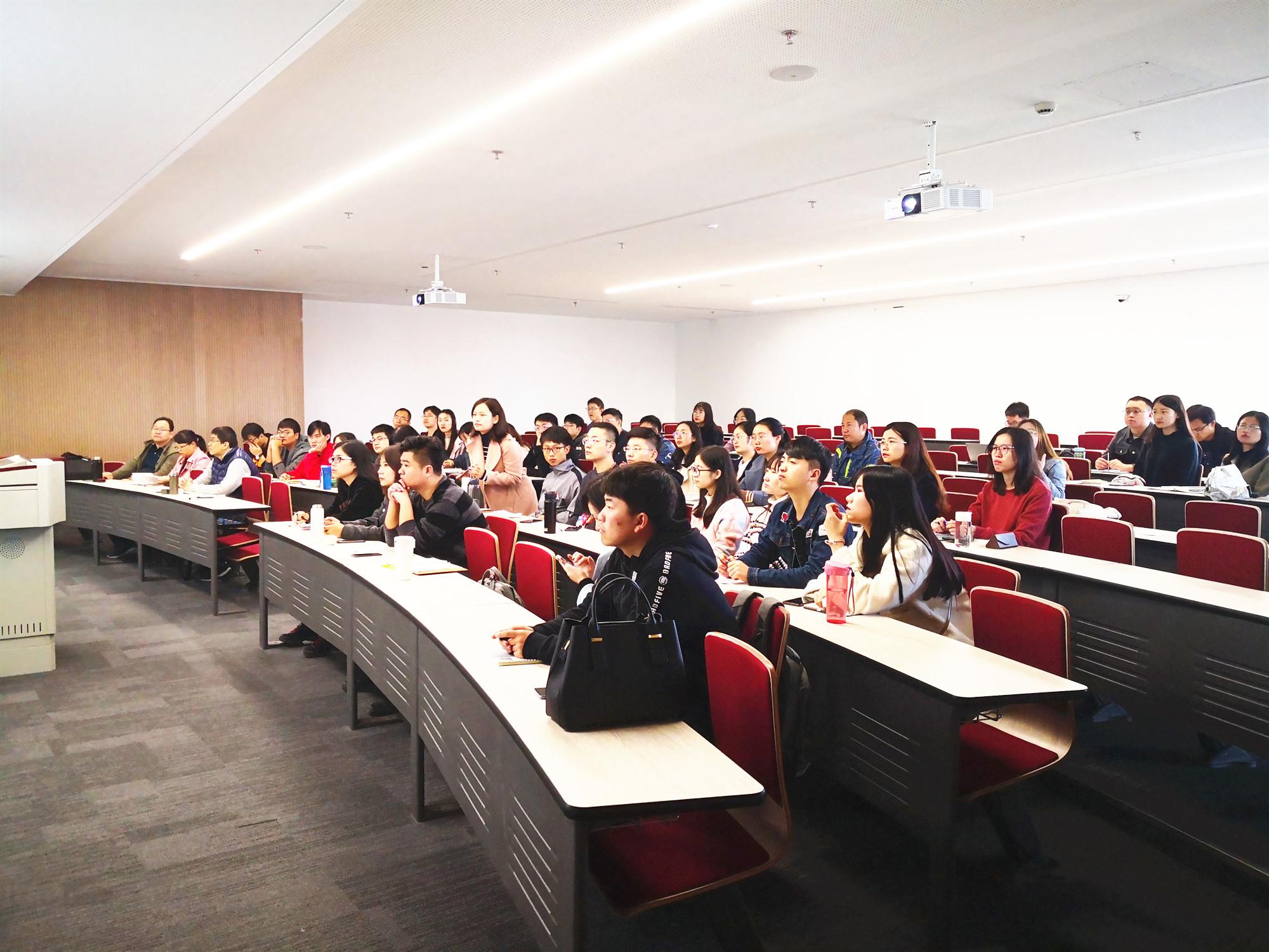 张成虎教授在报告中系统阐述了未来金融机构的发展趋势、金融科技的赋能逻辑、金融科技应用案例、关键技术、商业模式、银行业应对策略,并深入探讨了金融科技产生的逻辑影响。报告结束前,张教授与现场的师生进行了交流。