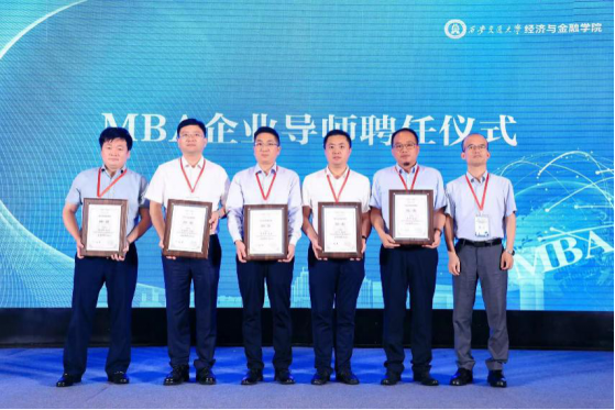 主旨演讲结束之后,进行了MBA企业导师、实践教学基地的聘任授牌仪式。学院MBA教学管理中心聘请了6名行业精英担任企业导师,授牌了6家相关行业优秀企业作为实践教学基地。