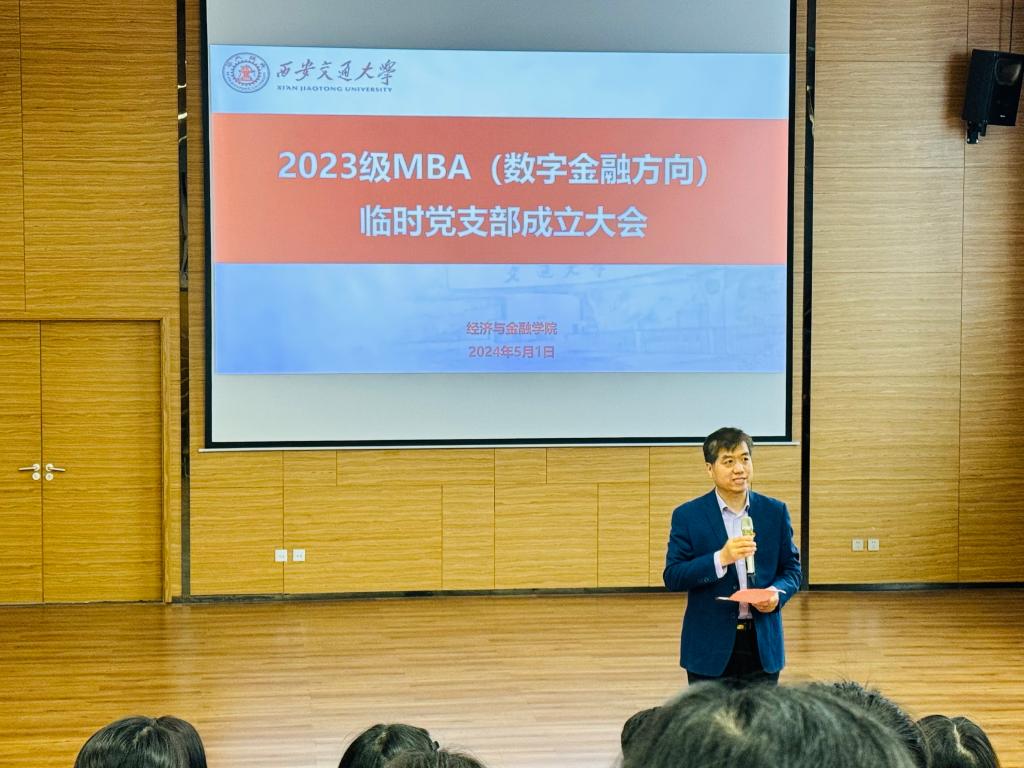 活动伊始,周建伦书记宣读了学院党委《关于成立2023级MBA临时党支部的决定》并讲话。周书记对近两年各级MBA临时党支部组织的各类活动和在班级管理中起到的积极作用给予了充分肯定,并寄语2023级临时党支部加强理论学习、提高党性修养、注重团结协作,在学习和工作中践行时代使命与责任担当。