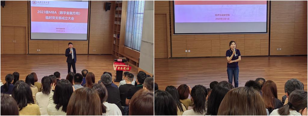 2023级MBA(数字金融方向)临时党支部书记陈锋同学、MBA(金融方向)临时党支部书记谷玥同学作为学生党员代表发言。陈锋同学提到,虽然班级党支部是“临时”的,但是同学们的情谊永存,党员同学们将在课程学习、班级管理、活动组织等各方面切实发挥先锋模范带头作用,为班级学风建设和同学们个人提升发展助力。谷玥同学对学院的支持表示衷心感谢,MBA临时党支部将会履行好基层党组织职责,组织各种形式的活动,在加强党建学习同时促进同学间的团结合作、交流进步。