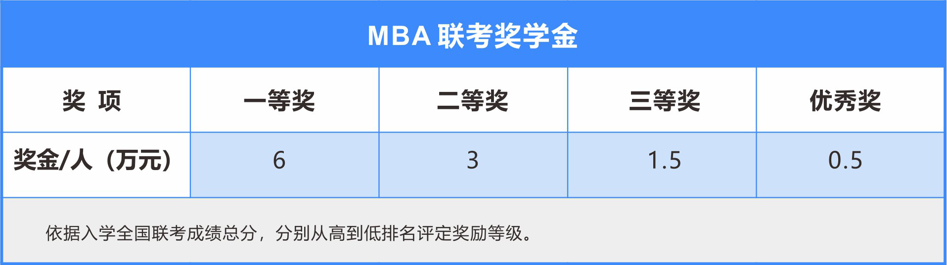 * 企业共同进步奖:对同一企业员工报考MBA项目达到一定人数条件的设专项奖学金。