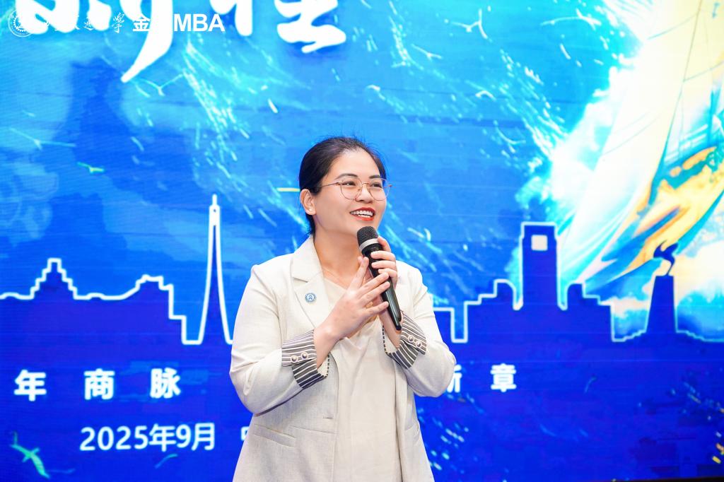 MBA S5221班刘凯同学作为新生代表登台发言。他结合自己在金融行业的实践经验,分享了对行业变革的深刻感悟,并将选择金融MBA视为对自我的“二次充电”和对未来的“精准投资”。他呼吁同学们“借交大沃土、赴时代新程”。真诚而有力的发言,不仅道出了众多同学的心声,也展现了学院MBA学子立足实践、领航未来的卓越追求。
