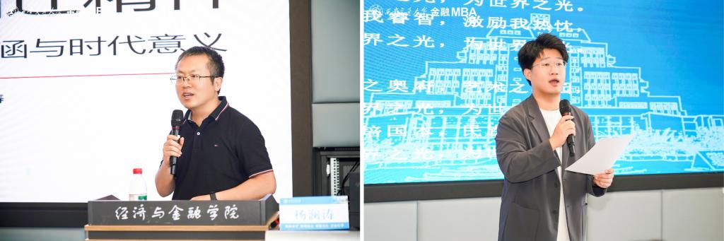 为了增强同学们对母校的认同感和归属感,9月6日下午,学院为MBA新生安排了校史、校歌专题学习。活动伊始,MBA中心主任马草原教授向同学们详细阐释了金融MBA项目“跨界融合、洞见未来”培养特色,为同学们勾勒出一幅多元视野与创新思维的教育图景,同时勉励MBA同学勇立潮头,以奋斗姿态拥抱时代机遇,将个人理想融入国家发展的大局之中。